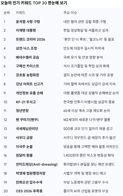 📅 2026년 1월 14일 대한민국 핫이슈 TOP 20